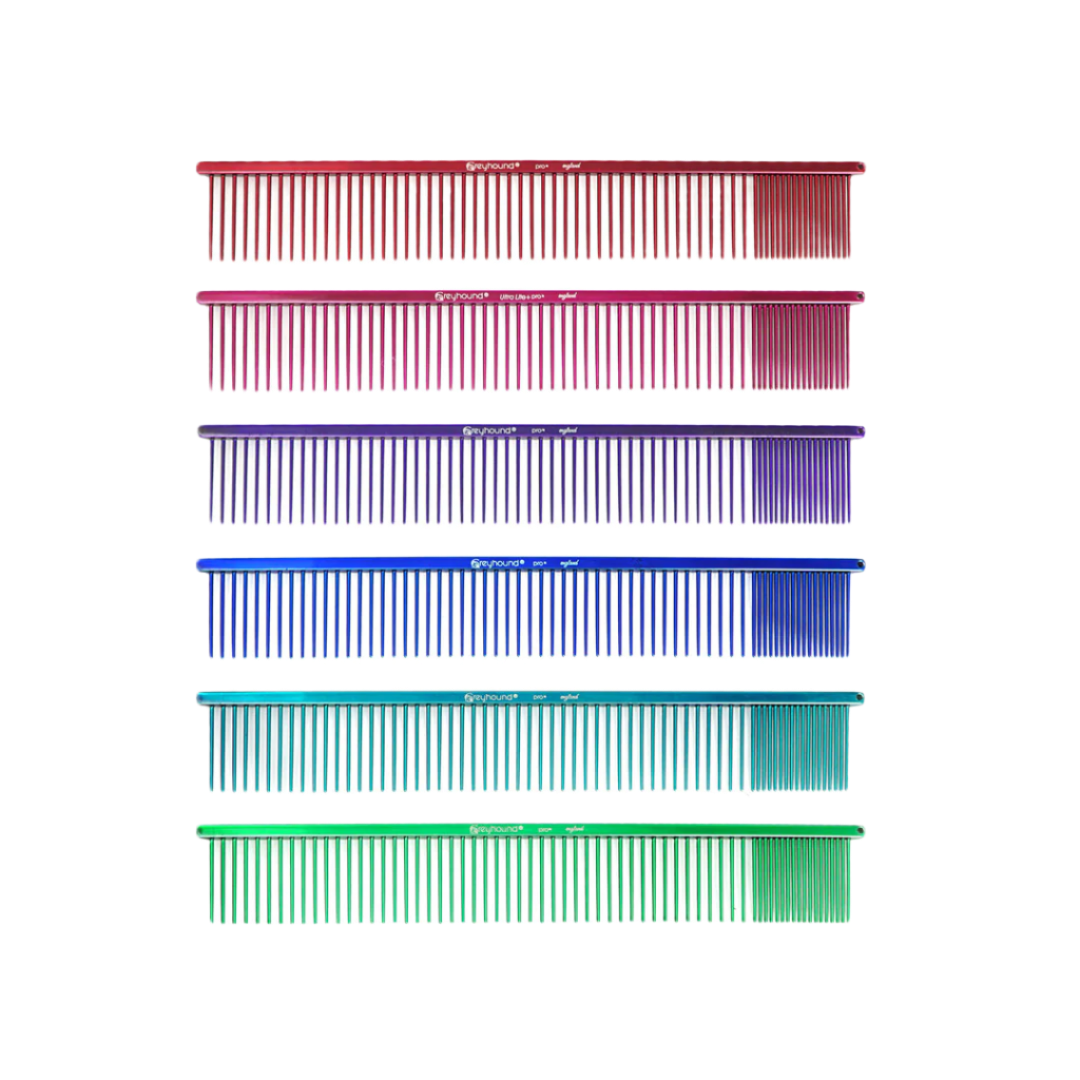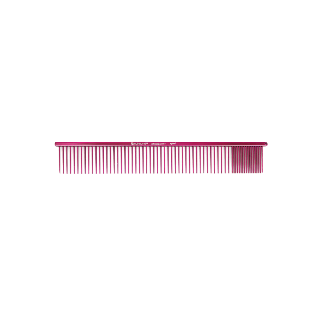 Greyhound Combs Ultra Lite+ (puddelkam) har et flot skinnende udseende og er velegnet til lang pels! Greyhound Combs Ultra Lite+ (puddelkam) er særligt god til kæmning. Greyhound Greyhound Combs Ultra Lite+ (puddelkam) glider let gennem hundens pels, og den ligger godt i hånden, når man kæmmer og puster på samme tid. Greyhound Combs Ultra Lite+ (puddelkam) er lavet af højeste kvalitet, hvor der ikke er gået på kompromis nogen steder for at opnå et billigere produkt. Greyhound Combs Ultra Lite+ (puddelkam) er meget velegnet til alle langhårede racer, hvor 2-i-1-funktionen med ekstra tætte tænder er særligt effektiv til at fjerne små filterknuder i pelsen. Greyhound Combs Ultra Lite+ (puddelkam) er velegnet til både hverdagspleje og hundeudstillinger. Greyhound Combs Ultra Lite+ (puddelkam) har vist sig at være meget populær blandt professionelle fagfolk og hundefrisører, hvor alle har deres egen unikke yndlingsfarve.