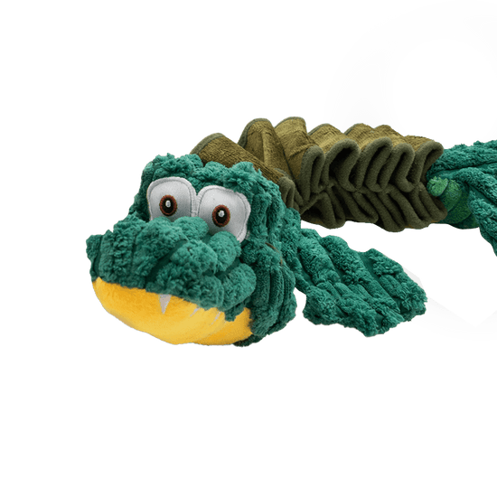 En sød og sjov bamse med piv, som din hund vil elske at lege med. Alligatoren er lavet af robust materiale og er designet, så der er forskellige teksturer og former, der gør det endnu sjovere for din hund at bide i tøjdyret;