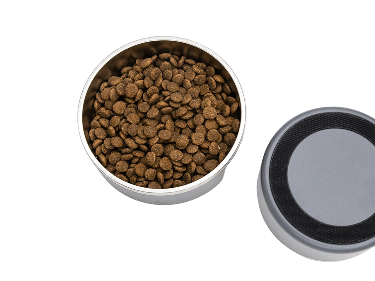 Den kraftige, rundformede gummiring i bunden gør skålen skrid- og støjsikker. Den glider ikke rundt, selv når hunden spiser ivrigt, og beskytter samtidig gulvet mod ridser.