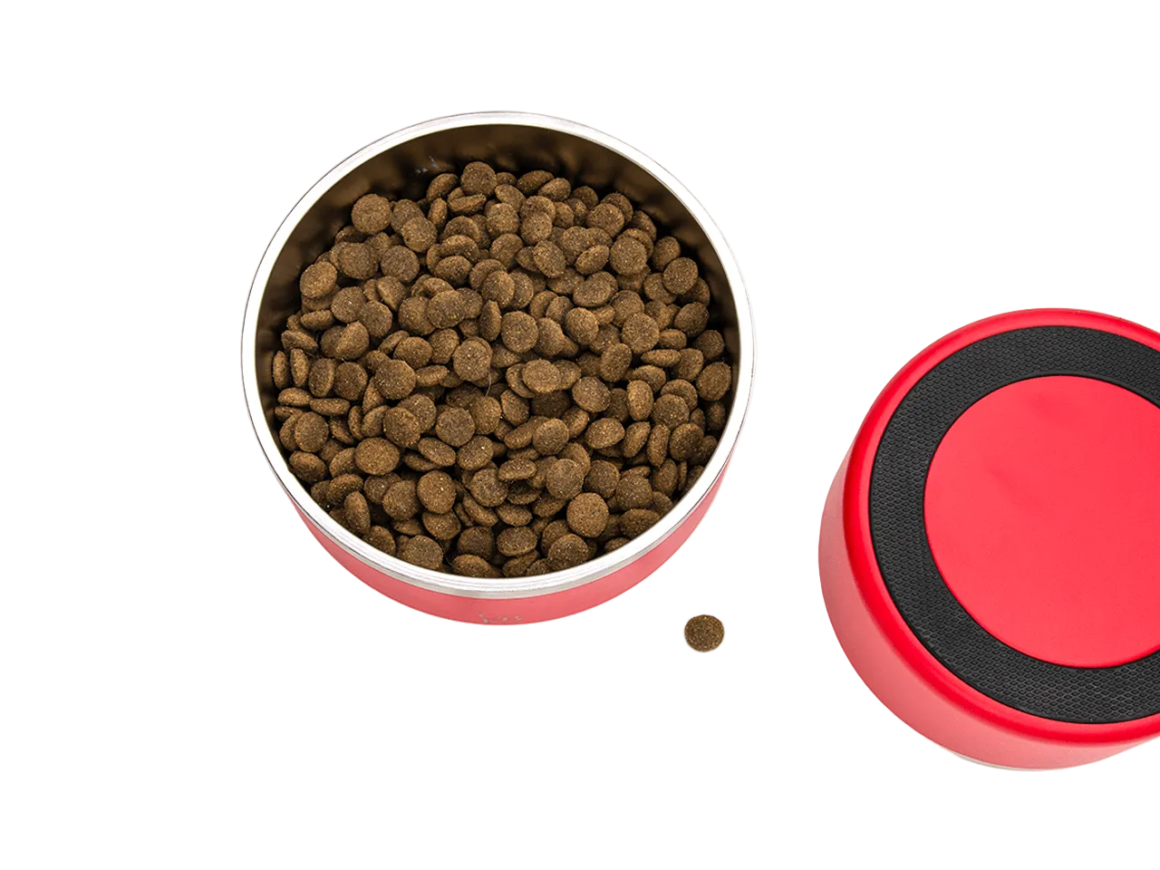 Den kraftige, rundformede gummiring i bunden gør skålen skrid- og støjsikker. Den glider ikke rundt, selv når hunden spiser ivrigt, og beskytter samtidig gulvet mod ridser.