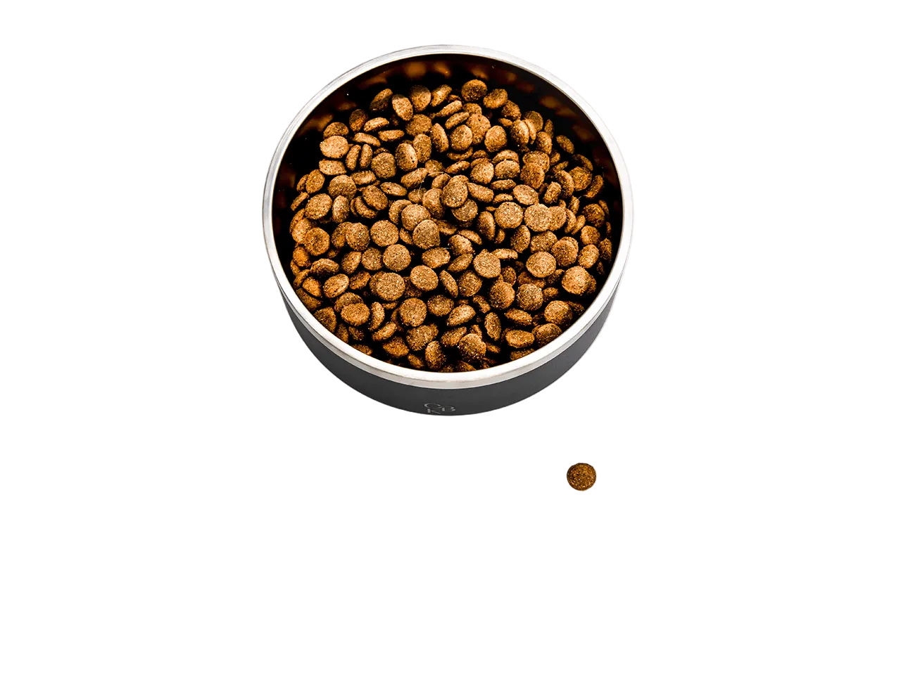 Den kraftige, rundformede gummiring i bunden gør skålen skrid- og støjsikker. Den glider ikke rundt, selv når hunden spiser ivrigt, og beskytter samtidig gulvet mod ridser.