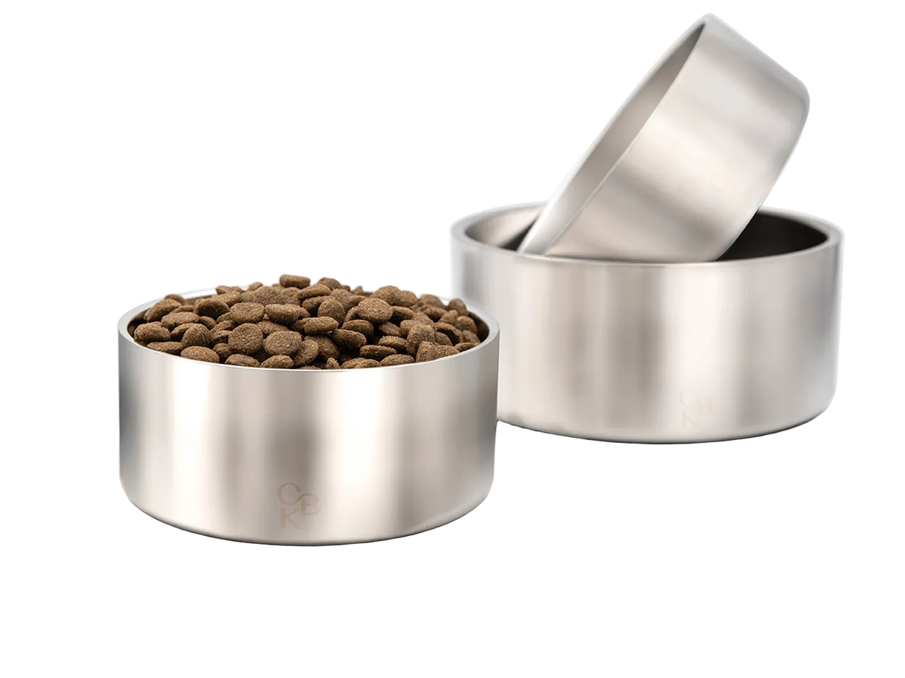 Vand- og madskåle i et smukt, eksklusivt design. Der er 9 forskellige bløde farver at vælge imellem, de er lavet af stål med et elegant mat farvet look.