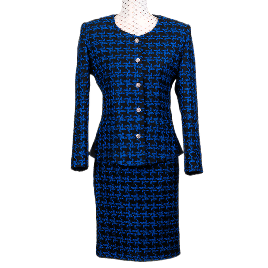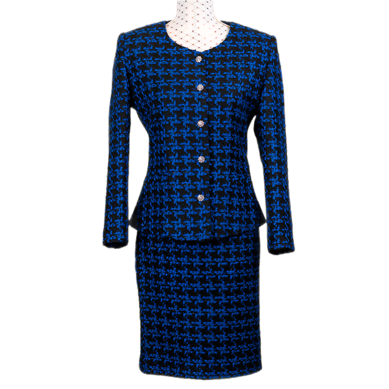 CBK Suits Tweed Look Suit Blue Ekose Pattern