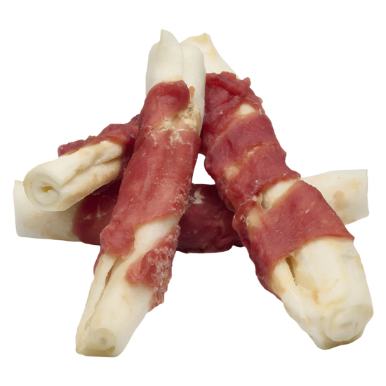 Twistet naturligt råhud betrukket med lækkert andekød