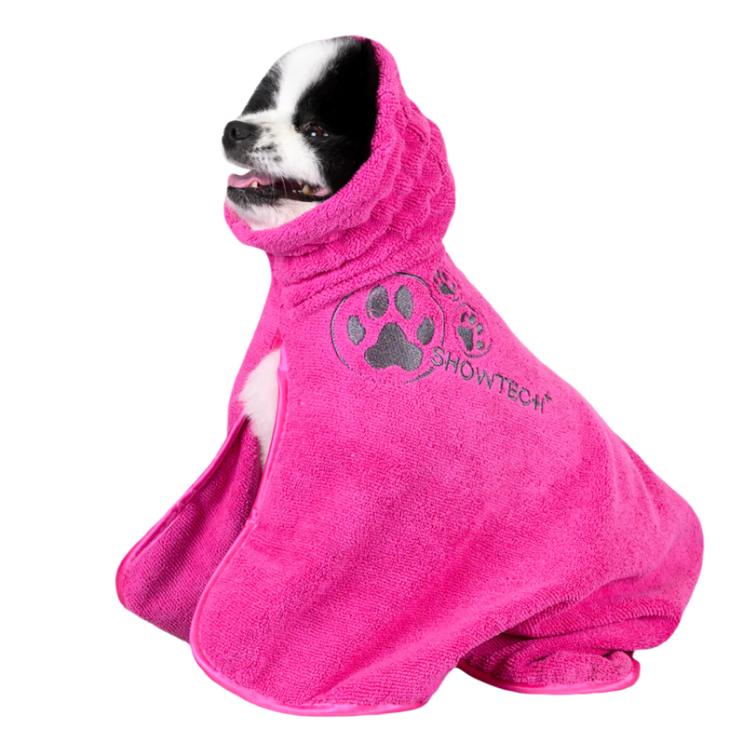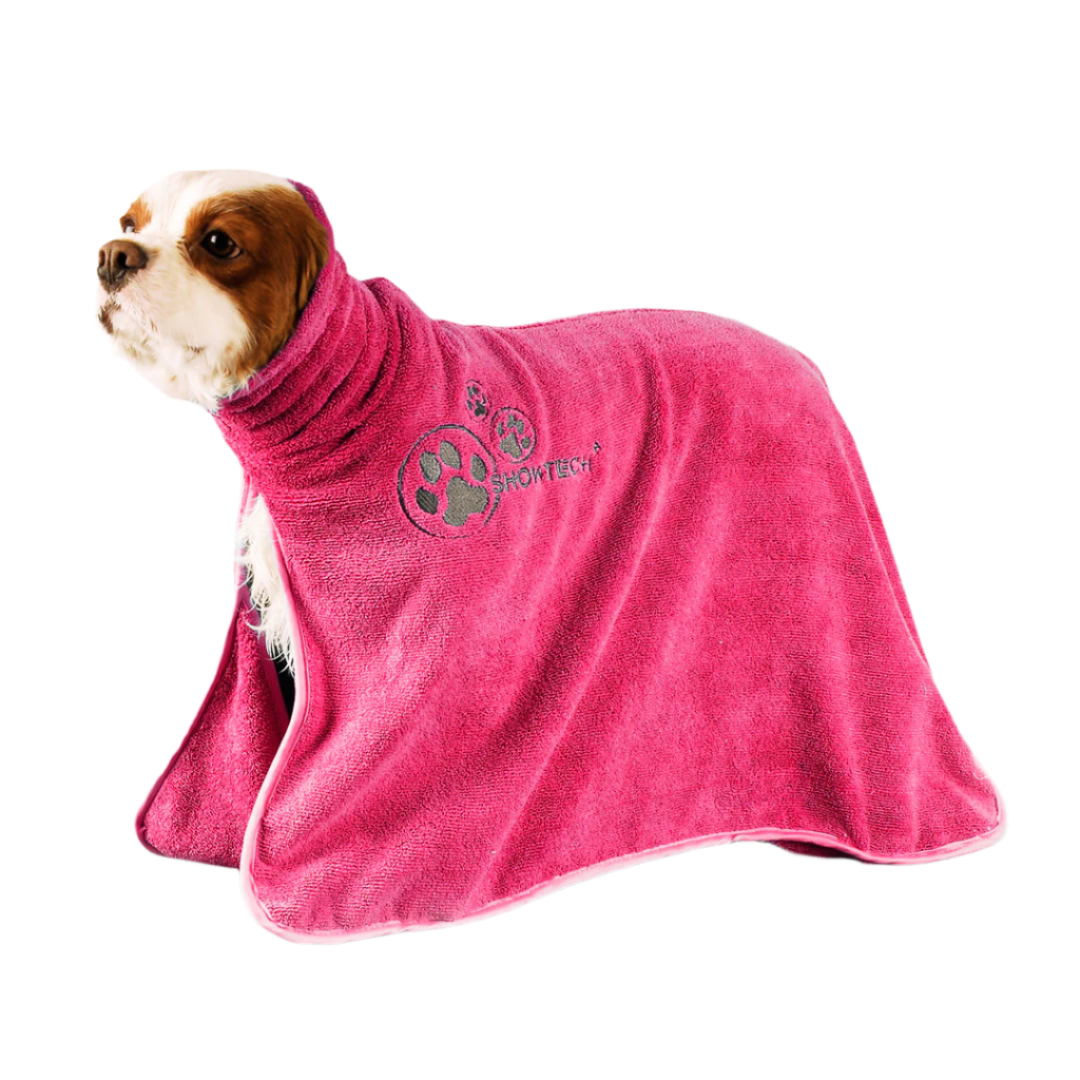 Denne behagelige Dry Dude fra Show Tech er super absorberende og tørrer hunden hurtigere end et almindeligt håndklæde på grund af mikrofiberens egenskaber.