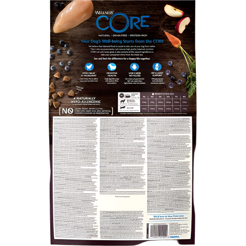 Wellness CORE Large breed Adult indeholder nedsatte mængder kulhydrat og rige mængder af superfoods i form af sunde frugter og grøntsager.