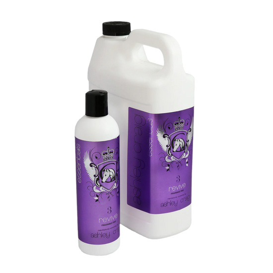 Fragrance-free Essentials Revive(3) er en plejespray, der tilfører fugt til pelsen mellem vaske. Spray Fragrance-free Essentials Revive(3) let over pelsen, inden du børster, reder eller føntørrer hunden. Brug Fragrance-free Essentials Revive(3) mellem vaske for at holde pelsen sund og forseglet. Sprayen kan bruges alene eller som det sidste trin i et vaskesystem, der starter med Fragrance-free Essentials Texture(1) balsam, efterfulgt af Fragrance-free Essentials Bathe(2) shampoo. Fragrance-free Essentials Revive(3) lever op til sit navn som en leave-in balsamspray. Den beskytter ved at lukke åbne hårstrå og forsegler fugt inde i hårstrået og afviser støv, olier osv.? Resultatet er en skinnende og mere holdbar pels. Fragrance-free Essentials Revive(3) kan bruges efter behov, dagligt eller ugentligt, sommer eller vinter uden at skulle bekymre sig om uønskede rester i pelsen. Essentials Revive(3) uden parfume kan også bruges til glatning (fladjern), som balsam, som plejespray mod knuder eller til føntørring. Den er fantastisk til at fjerne fældende underuld og forkorter tørretiden. Essentials Revive(3) fås med eller uden parfume, med præcis de samme effekter.