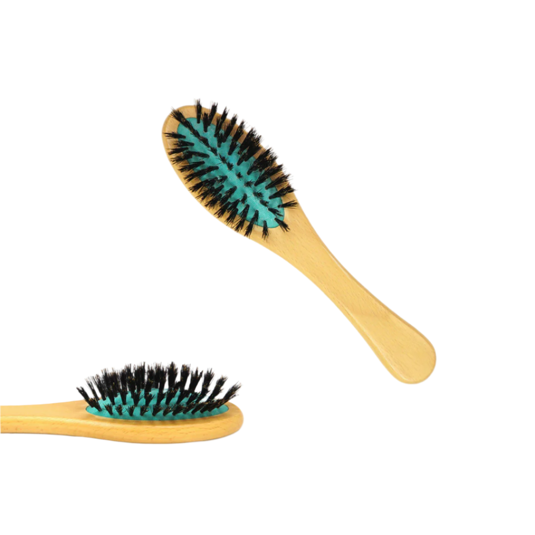 Greyhound Boar Bristle Brush med naturlige ornebørster og træhåndtag er yderst behagelig at holde. Greyhound Boar Bristle Brush er en god hverdagsbørste og super velegnet og skånsom til lange pelser! Puden er lavet i et minutiøst skræddersyet design, knap synligt, hvilket giver håret lidt spænding, når du styler og pelsen ikke beskadiges. Greyhound Boar Bristle Brush har en satinbelægning, der gør den vandafvisende og silkeblød at røre ved.