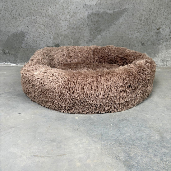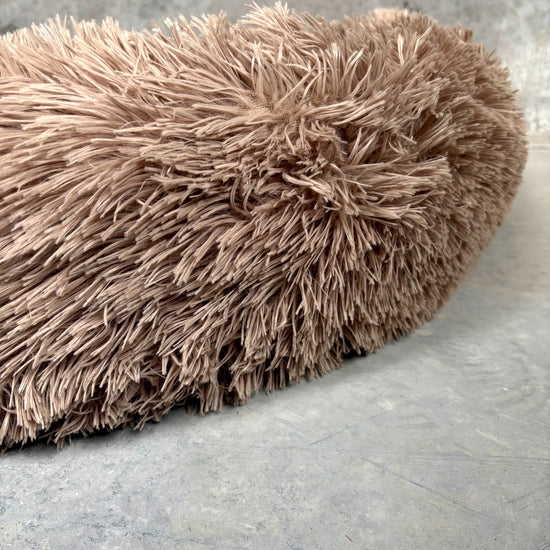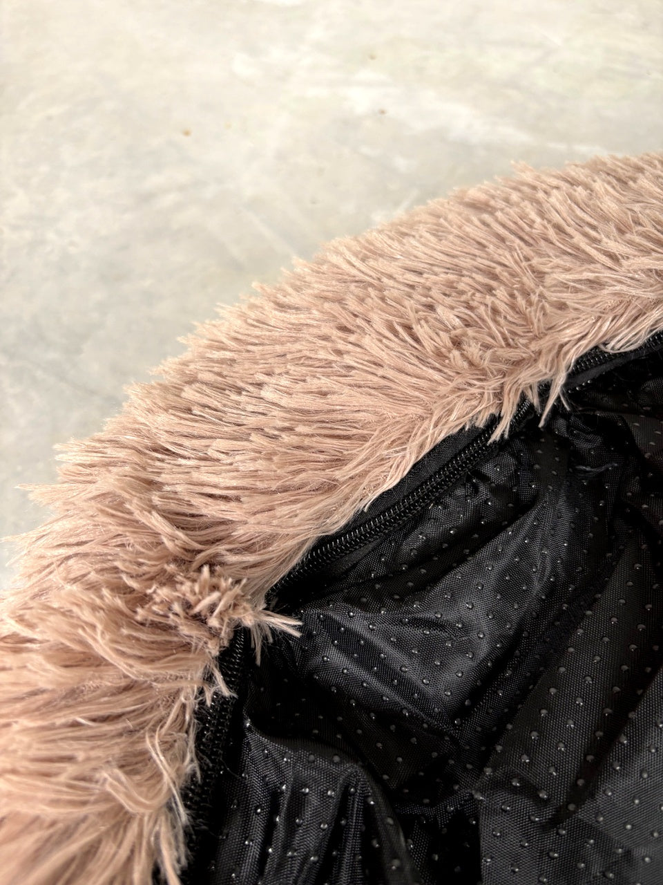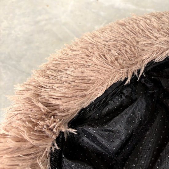 Allerede ved synet at denne hundeseng, ser den umådelig blød, fyldig og fluffy ud – og det er den i den grad også! Både det indre, som det ydre er af det blødeste materiale. Fyldet er blødt og ekspanderbart, som gør at hunden kan putte sig ned i sengen. Stoffet udenpå er det bløde fleece, der med sine 4 cm lange strimler gør donutsengen fluffy.