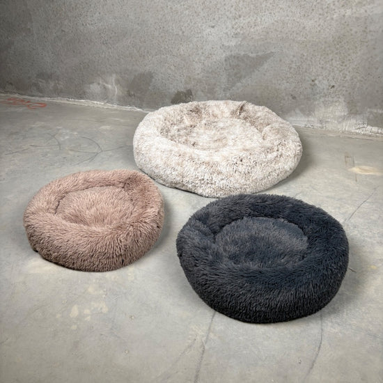 Premium-versionen af de populære fluffy donut-hundesenge - lad din hund svælge i komfort og velvære