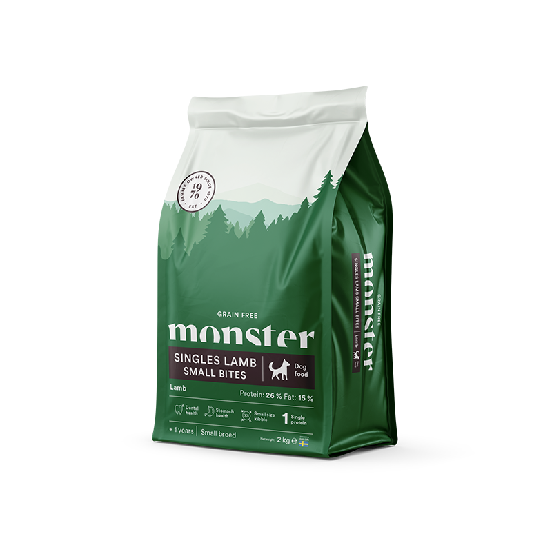 Lam 54 % (frisk lam 23 %, tørret lammeprotein 23 %, lammefedt 5 %, hydrolyseret lammeprotein 3 %), hele ærter, kartoffelflager, tørret roemasse, solsikkeolie, tørret æble, sød kartoffel, linfrø, tørret gulerod , hydrolyseret gær (en kilde til mannan-oligosaccherider og beta-glucaner), tørret cikorierod (en naturlig kilde til inulin og fructo-oligosaccherider), tørret lucerne, mineraler (inklusive natriumhexametaphosphat* 0,33 %), tørret broccoli, tørret spinat , tørrede tranebær, tørrede blåbær, tørret spirulina, glucosamin (100 mg/kg), chondroitinsulfat (100 mg/kg), planteekstrakter (Yucca schidigera, Macleaya cordata, Rosmarinus sp., Vitis sp., Curcuma sp., Citrus sp., Eugenia sp.). *mineral til reduktion af tandsten.