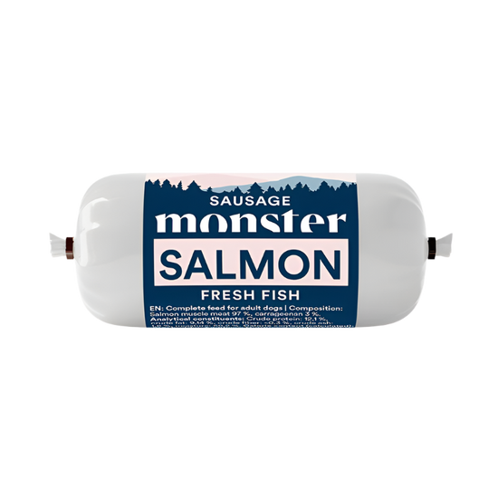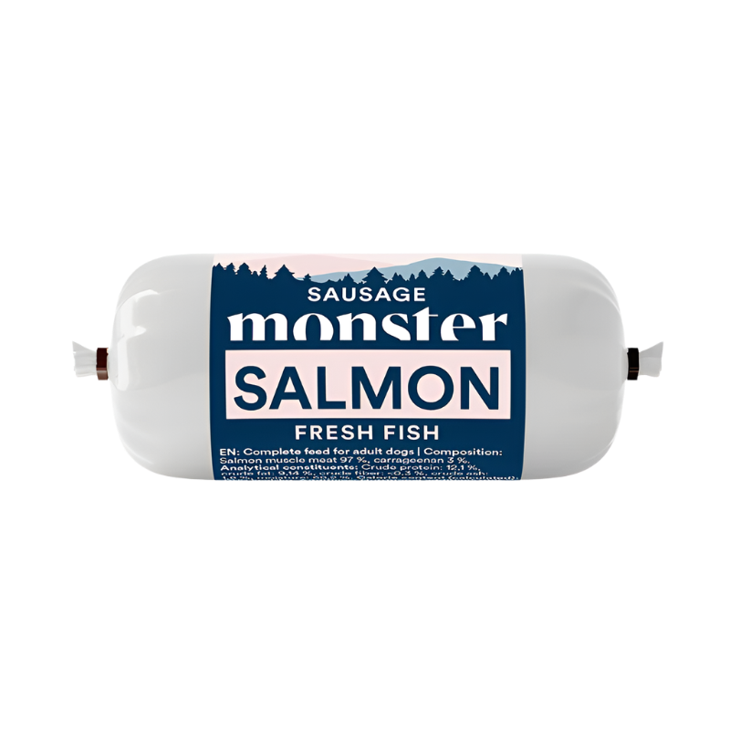 Kødfulde, kornfri Monster gode pølser. Serveres som fuldfoder, men fungerer måske allerbedst som belønning eller godbidder, Takket være den fine tekstur, er den velegnet til at have i lommen. Du bestemmer selv. Bare snit i tern og beløn.
