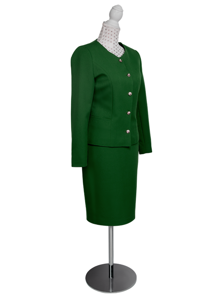 • Jakke og nederdel skal være lukket med knapper/lynlås og vendt på vrangen