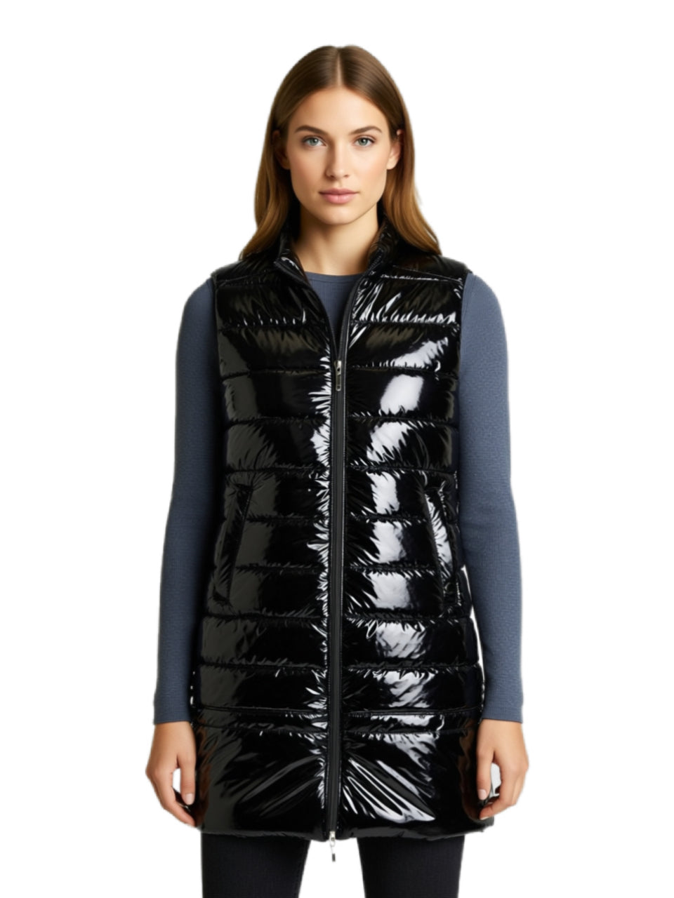 Denne lange sorte Showgear puffer over-vest er skabt til hundeudstillere, der vil holde varmen og beskytte deres showtøj. Bruges som et let og varmt lag udenpå dit udstyrstøj, mens du venter ringside og bevæger dig rundt på udstillingen. Holder dig varm, uden at gå på kompromis med bevægelighed og stil.