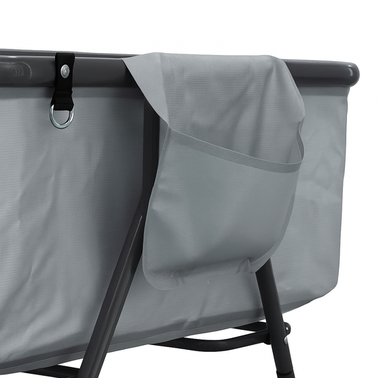 Pladsbesparende, sammenklappeligt design: Det foldbare design gør badekarret nemt at klappe sammen efter brug. Praktisk opbevaring uden at optage meget plads – ideelt til mindre hjem.