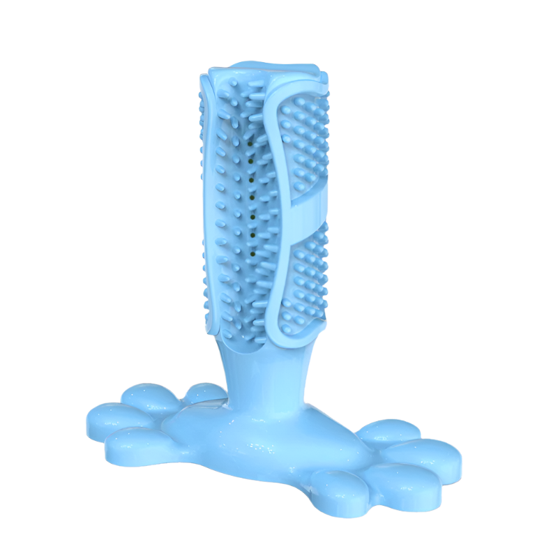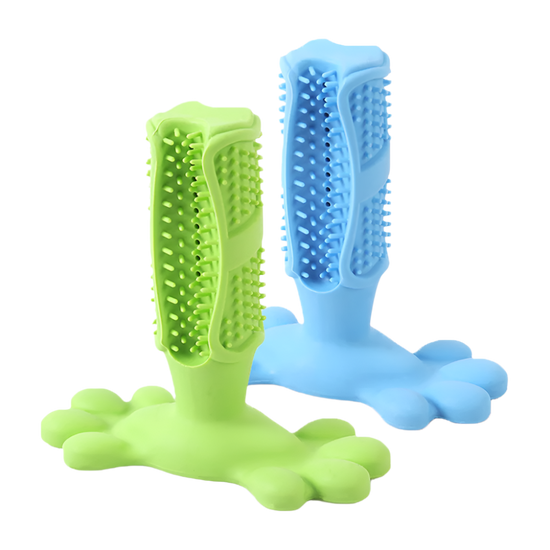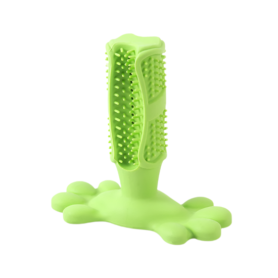 Den nubrede overflade og dutterne i siden af hundelegetøjet er designet, så de kan rense tænderne hele vejen rundt, imens din hund tygger på tyggestangen.Legetøjet fjerner plak og skidt, så din hund får en bedre mundhygiejne. Du kan putte hundetandpasta i siderne på tyggestangen, så tandrensningen bliver ekstra effektiv, og du kan bruge det som substitut for hundetandbørsten.
