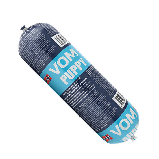 Vom og Hundemat har udviklet en blanding til hvalpe, som består af kylling, komave, laks, æg og okselever. Blandingen sikrer hvalpen rigelig med nødvendige næringsstoffer og tager specielt hensyn til hvalpens protein- og energibehov.