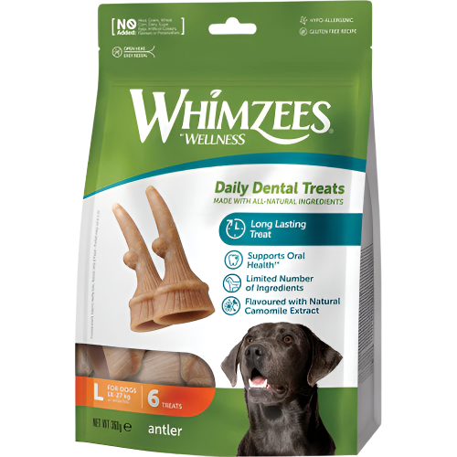 WHIMZEES Antlers unikke form blev bevidst udviklet til at give hundene en sund udfordring og holde dem engagerede og tygge længere.
