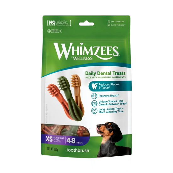 Disse underholdende og effektive "tandbørste" godbidder er sammensat af blot seks nøgleingredienser og bidrager til at fjerne plak, tandsten og reducere de bakterier, der forårsager dårlig ånde. Tandbørsterne har gennemgået videnskabelige tests og er blevet certificeret af VOHC for deres evne til at mindske tandsten og plak hos hunde.