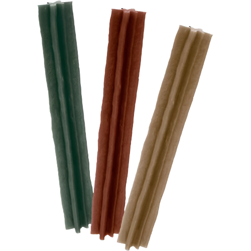 - Stiv vegetabilsk-baseret tekstur hjælper med at fjerne plak og tandsten, når hunde tygger.
