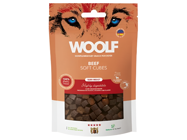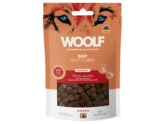 Woolf Soft Cubes er en blød og smagfuld godbid velegnet til træning, belønning, til store til små og til hvalpe.