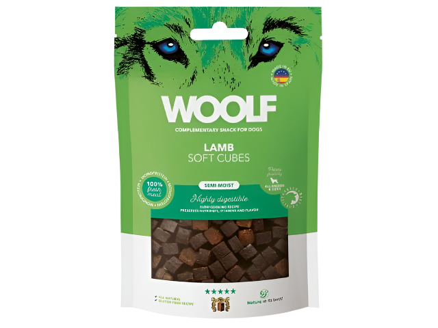 Woolf Soft Cubes er en blød og smagfuld godbid velegnet til træning, belønning, til store til små og til hvalpe.